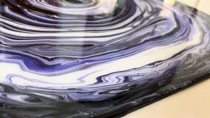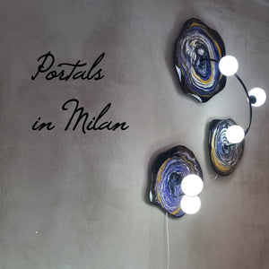 The lamp is created in a simple minimal design to keep the focus on the portals. On a quest to create a portal like look, designer Sanjeet Gadkari found a great result in acrylic pouring, working with town artists.